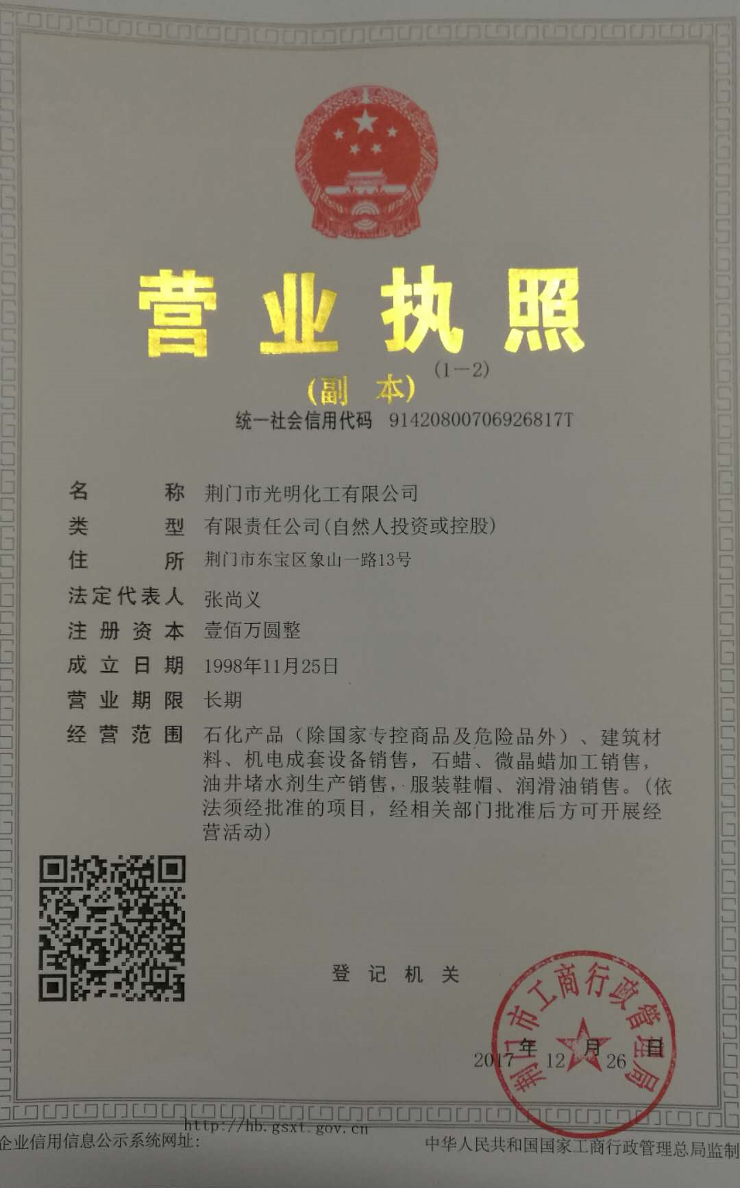 © 2014荊門(mén)市光明化工有限公司 版權(quán)所有 電話:13908690979 地址 : 荊門(mén)市象山一路18號(hào) 未經(jīng)許可不得復(fù)制轉(zhuǎn)載 備案號(hào): 鄂ICP備18000091號(hào)-1 荊門(mén)百捷 技術(shù)支持